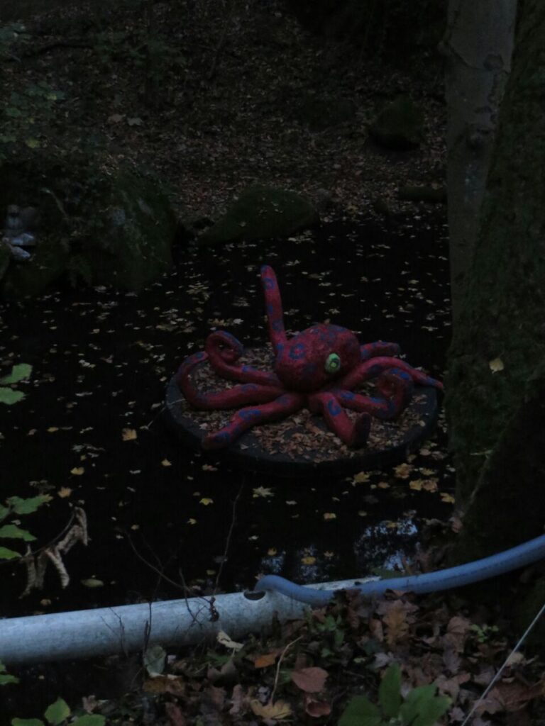 Als es dunkel wurde ging es in die Nachtrunde. Der Vollmond hat den Weg etwas beleuchtet, es war eine laue Herbstnacht. Die Ziele waren mit einem kleinen LED-Licht ganz wenig beleuchtet. Als Pflock für den Abschuss diente eine Solarleuchte. Diesmal wurde mit 3 Pfeilen geschossen, allerdings in tiefstem Dunkel, sodass man nicht sagen konnte was falsch war, wenn man nicht getroffen hat. Wo ist der Pfeil gelandet? Drüber oder drunter?