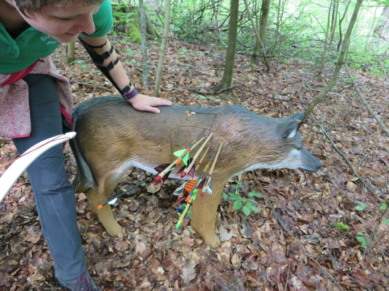 (Rinklingen JB) Vergangenes Wochenende haben die Bruchsaler Blankbogenschützen zu ihrem Jagdturnier in Gondelsheim aufgerufen. Zum 10. Jubiläum dieses Turniers haben die Bogenschützen aus Bruchsal sich bestes Wetter bestellt und einen tollen Parcours über die Wiesen und durch den Wald rund um die Grillhütte von Gondelsheim eingerichtet. Das Event war restlos ausgebucht und somit machten sich 180 Teilnehmer auf, um die 31 Stationen zu absolvieren. Unter den vielen Teilnehmern war natürlich auch wieder eine Abordnung vom TSV Rinklingen zu finden. Am Samstag wurde zunächst eine 3-Pfeil-Runde geschossen. Maximal drei Pfeile durften auf ein Ziel abgegeben werden. Die Ziele standen auf unterschiedlichen Distanzen zwischen 5 und ca. 50 Metern. Ob durch eng zusammen stehende Bäumen hindurch, von einem Abhang herunter oder leicht bergan – die Ziele waren gut und teils ambitioniert gestellt.