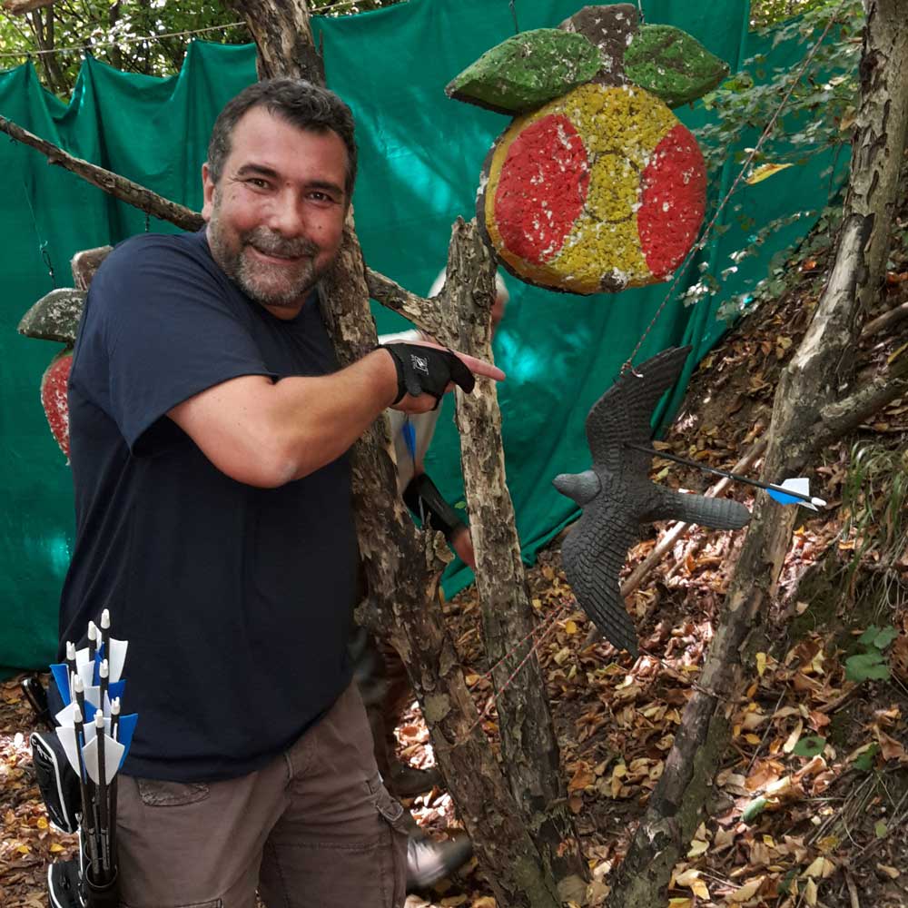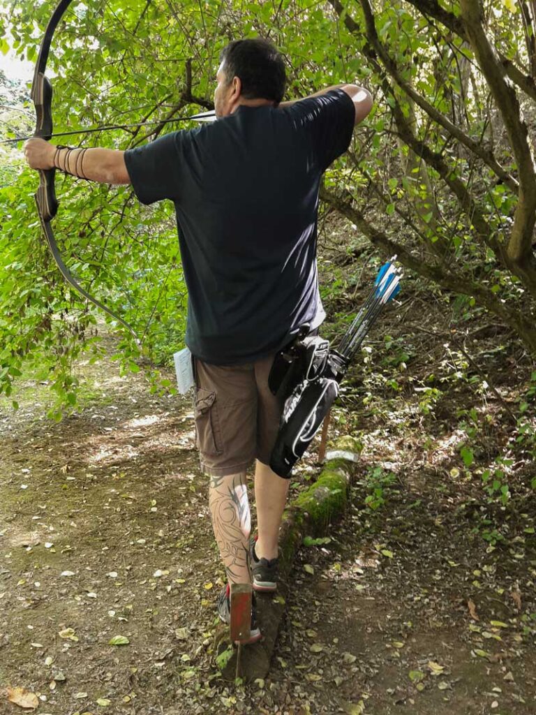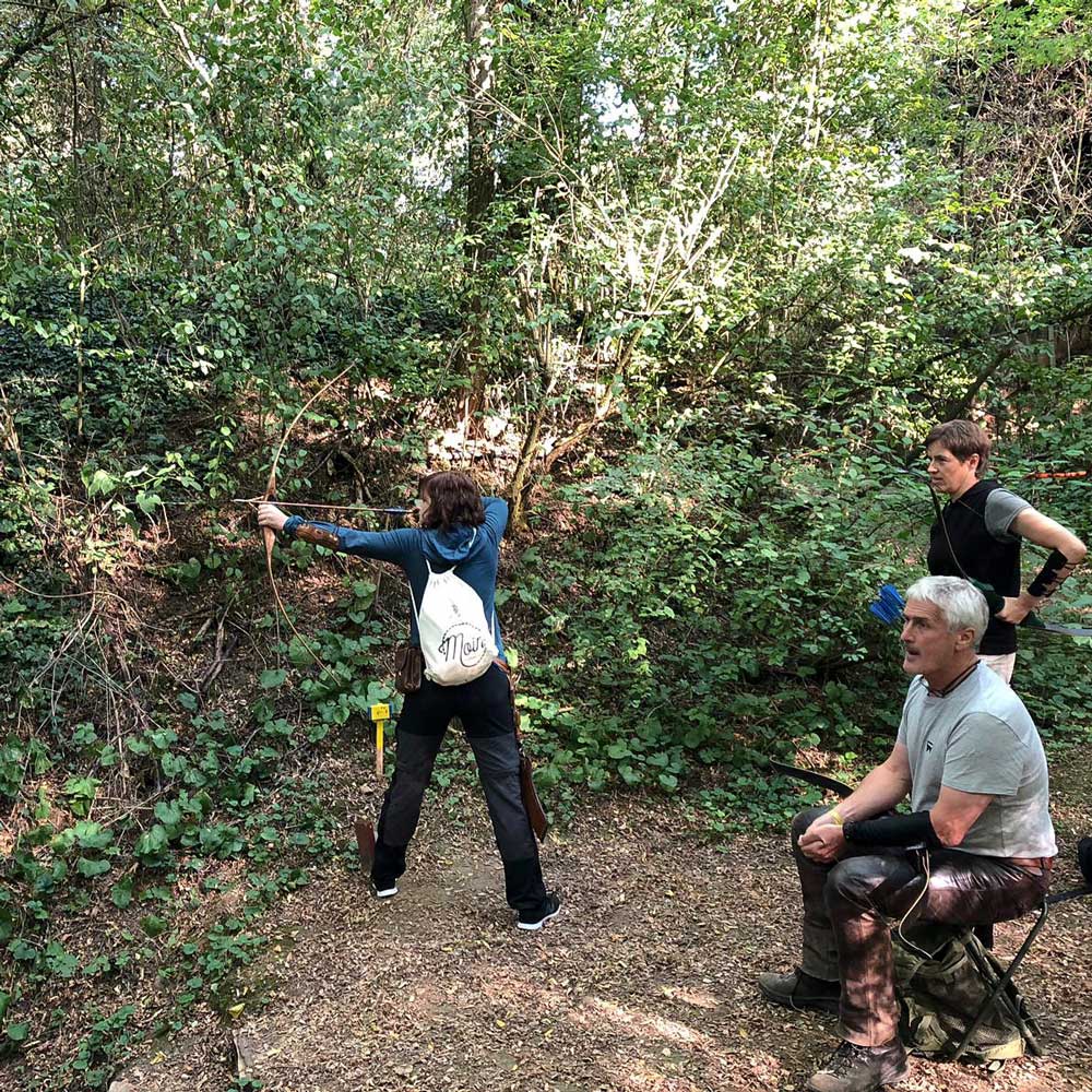 Bei einer morgendlichen Dreipfeilrunde und der Hunterrunde am Nachmittag mussten Walk-Up-Stationen, bewegte Ziele sowie Schüsse vom abstrakten Holz-Pferd und balancierend von einem Holzstamm aus gemeistert werden.
