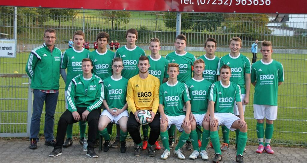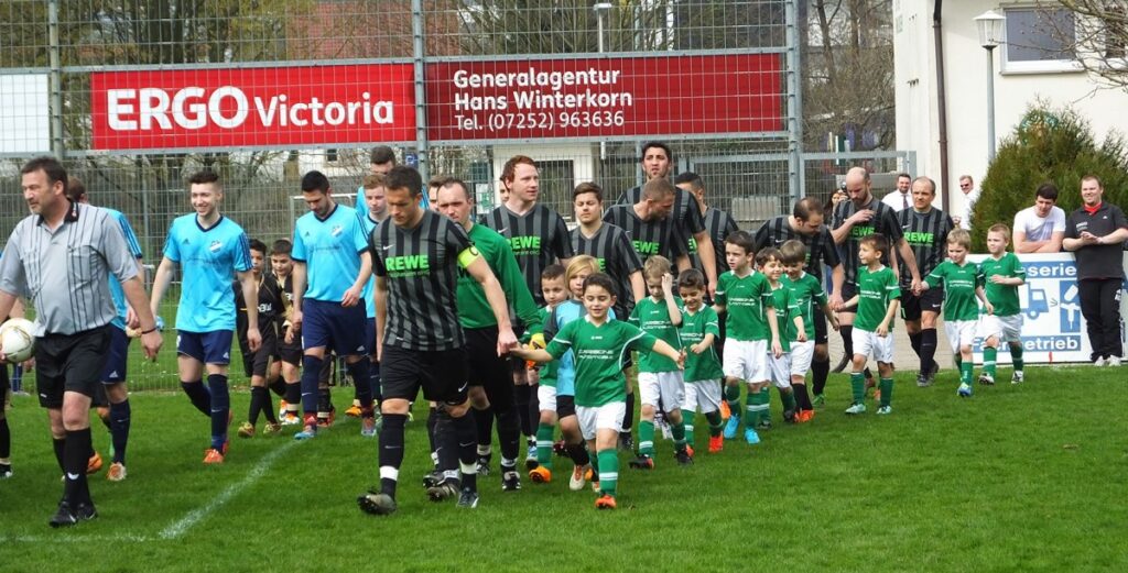 Aufmunternde Aktion der Seniorenmannschaft des TSV Rinklingen für die verletzten Spielerkollegen Tobias Hammes und Darwin Scott Pinto